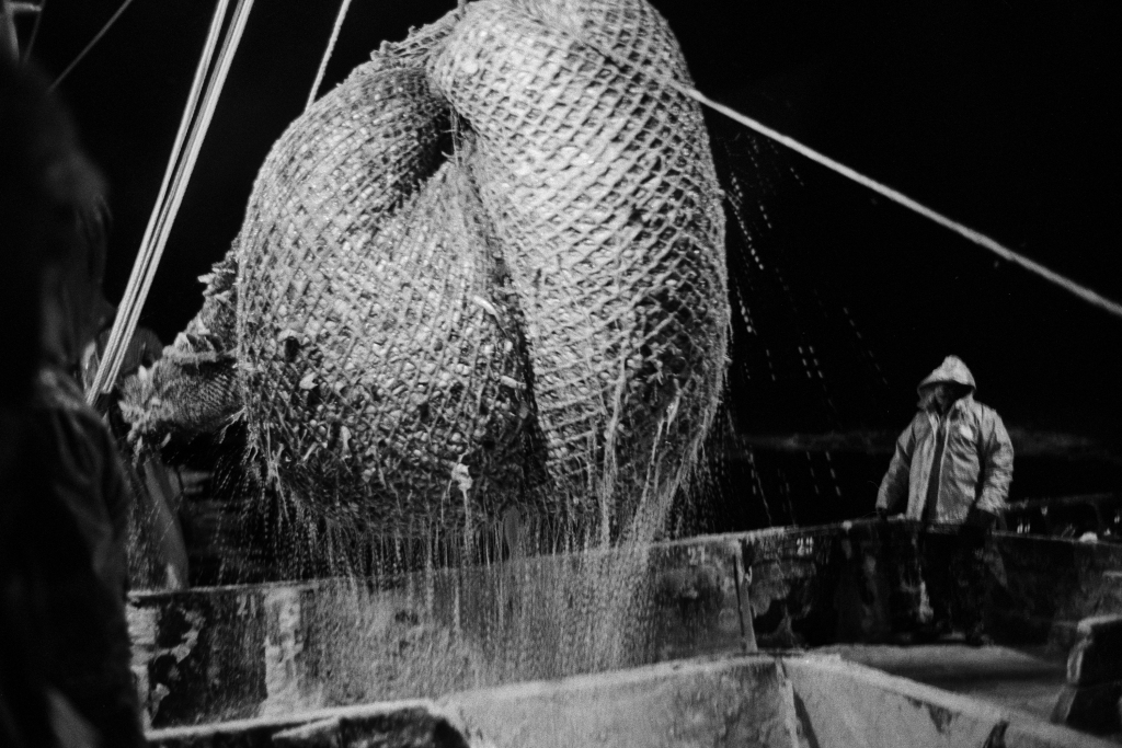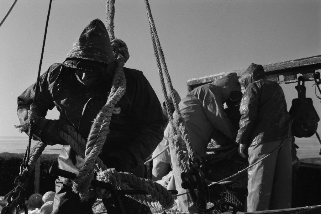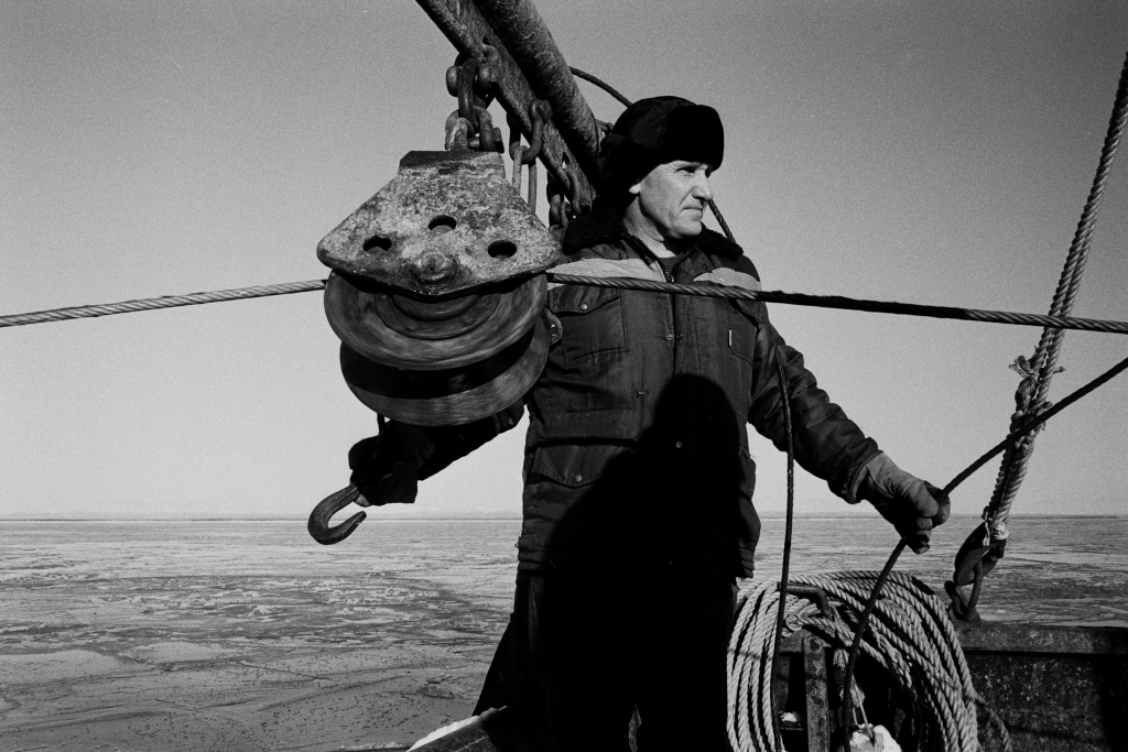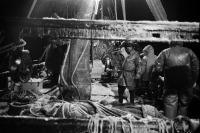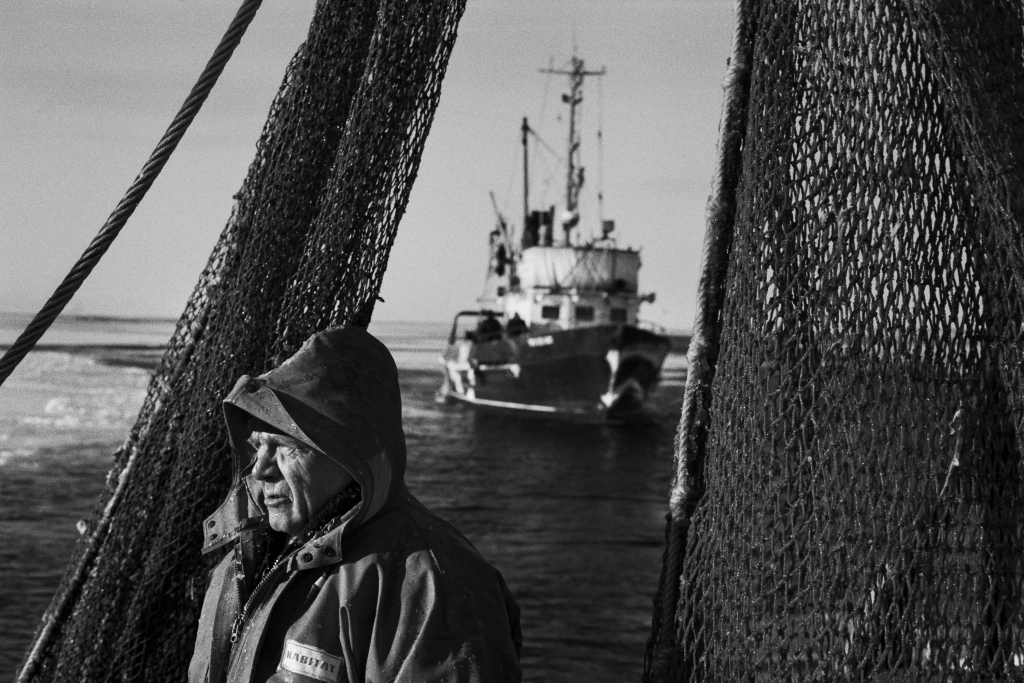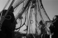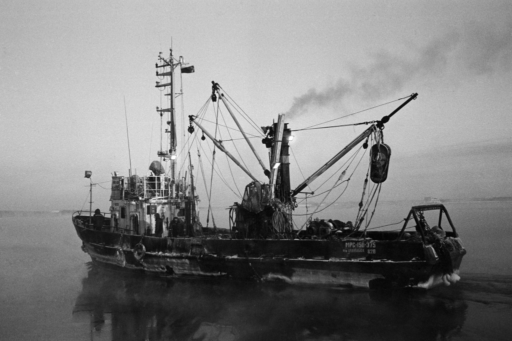 Поронайск (о. Сахалин) — это единственное место на острове, откуда все еще отходят МРС (малый рыболовецкий сейнер) для ловли рыбы. Навагу ловят близнецовым методом - невод растягивается между двумя сейнерами, которые, после набивки рыбой, выбираются на один из двух судов по очереди, пока не наполнятся полные трюмы рыбой, если повезет. Ранее утро. Еще темно. Команды обоих сейнеров собираются на палубах, курят и обсуждают предстоящий день. Выходим из порта, но одно судно не прошло буруны. Сели на мель. Хорошо, что рядом наш "брат-близнец". Натянули трос, первая попытка не дала результата, пробуем еще и еще. После очередной попытки удалось выйти в открытое море. Сейнеры сходятся, команды перемешиваются между судами, обмениваются такелажем, расходятся в разные стороны - растягивают невод. От мастерства двух капитанов зависит - набьется ли рыба или вытащится пустая сеть. Снова сходимся. Команды снова перемешиваются и два судна становятся единым организмом. Пора выбирать невод из воды, только теперь станет ясно - на нашей ли стороне удача. Не так много, но она есть. И эти упражнения между близнецами повторяются из раза в раз, пока не набьются трюмы. Ранее утро быстро меняется на короткий зимний день, и вот снова уже темно. Рыбалка продолжается. Трюмы набиты - пора в порт на разгрузку. Зимой в море не нужны герои, чтоб выжить в таких условиях важна слаженность всей команды.