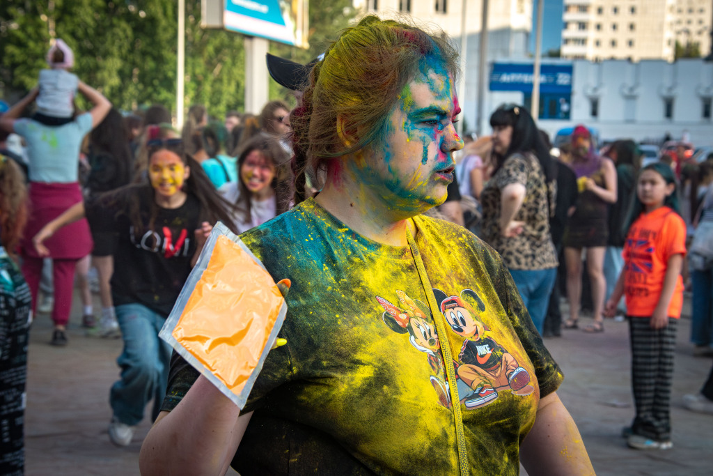 Возле торгового центра "Жемчужина Сибири" где не умолкала музыка и работал диджей прошло одно из ярких событий лета - праздник Холли. Этот красочный фестиваль собирает молодежь и в этот раз город не стал исключением. Сегодня Холли проводится во многих городах России как летний музыкальный праздник, объединяющий танцы и настоящую феерию красок. На площади собрались любители музыки, драйва и веселья. Основную массу фестиваля составляли подростки и молодые люди, которые зажигали под ритмы заводной дискотеки. Музыка и море разноцветной пудры - всё это создавало атмосферу праздника. Некоторые участники пришли целыми компаниями, семьями, которые с удовольствием вовлекались во все происходящее. Дети с восторгом размахивали пакетиками с краской, обсыпая друг друга и случайных прохожих. Особенно много эмоций вызывали моменты, когда множество рук взлетало в воздух, выбрасывая облака ярких цветов, и все вокруг на секунду будто погружались в магическое разноцветное облако. Смех, фотографии на память и десятки селфи - чтобы такой день запомнился надолго. Праздник Холли в России набирает популярность с каждым годом, доказывая, что лето - время для настоящих красок жизни и новых ярких эмоций.