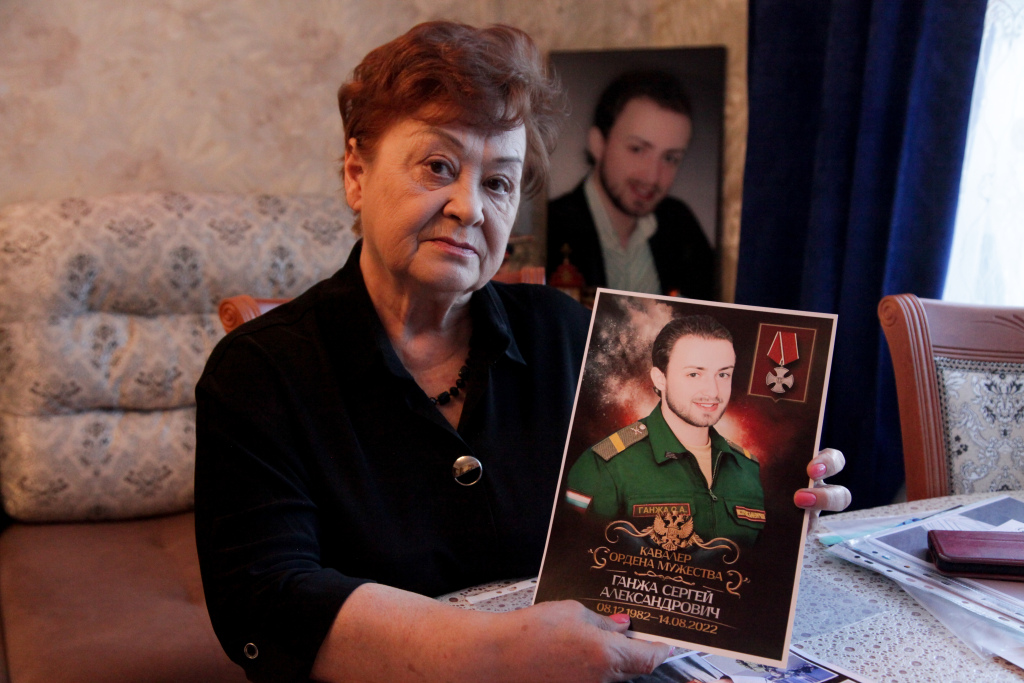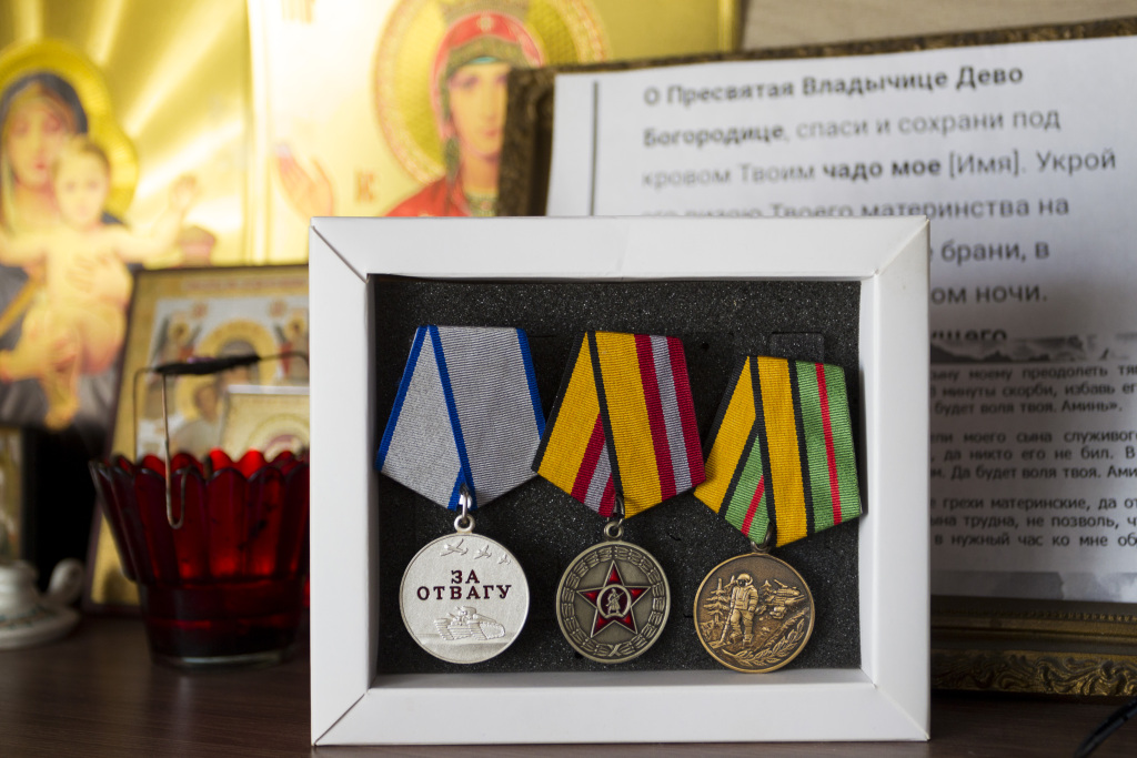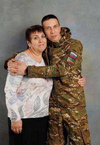 История его подвига пронеслась по всем федеральным СМИ: южноуралец Сергей Ганжа с позывным «Хара» пронес под огнем раненого командира 8 километров. В следующем бою Сергей погиб. Фото сделано во время моего интервью с мамой Сергея Людмилой Михайловной.