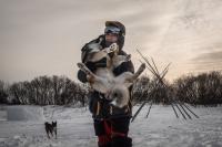 "На краю света" (серия из 12 фотографий), время съёмки январь- май 2025г., север о. Сахалина. Герои данной серии, Герман и Анжела, являются представителями коренных малочисленных народов Сахалина. Это уникальные этносы, которые существенно отличаются от других российских этносов: мировоззрением, специфической материальной и духовной культурой. Однако численность их крайне мала, и существует реальная угроза полного исчезновения...Их селение находится на берегу Ныйского залива, состоящем всего лишь из одного барака. Основным родом занятий по сей день является рыболовство, таёжная охота, а также сбор ягод, грибов, орехов, дикоросов. Кроме этого, они решили вернуться к традиции, восстановив оленеводческое хозяйство. На сегодняшний день их стадо насчитывает свыше пятидесяти оленей. Коренные народы Сахалина теряют свою самобытность и таких мест традиционного проживания практически не осталось. Современное время диктует совершенно иные принципы жизни, нивхи, уйльты и эвенки их в какой - то степени принимают. Но в глубине своей памяти они сохраняют приверженность своим обычаям и традициям, что является залогом их пребывания на земле, как уникального этноса.