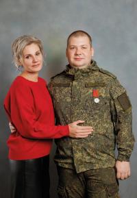 участник СВО, майор Андрей Викторович Лесков с супругой. Воевал за освобождение Запорожской области, награжден орденом Мужества, медалью «За боевые заслуги».